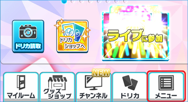 1.ホームの「メニュー」ボタンを選択します。