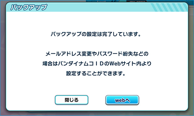 ※バンダイナムコIDを取得していない場合はバンダイナムコIDを取得してからバックアップ設定をおこなってください。
